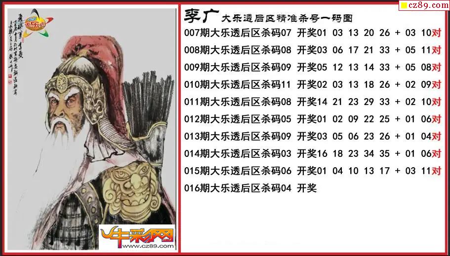 大乐透016期李广后区精准杀号一码图